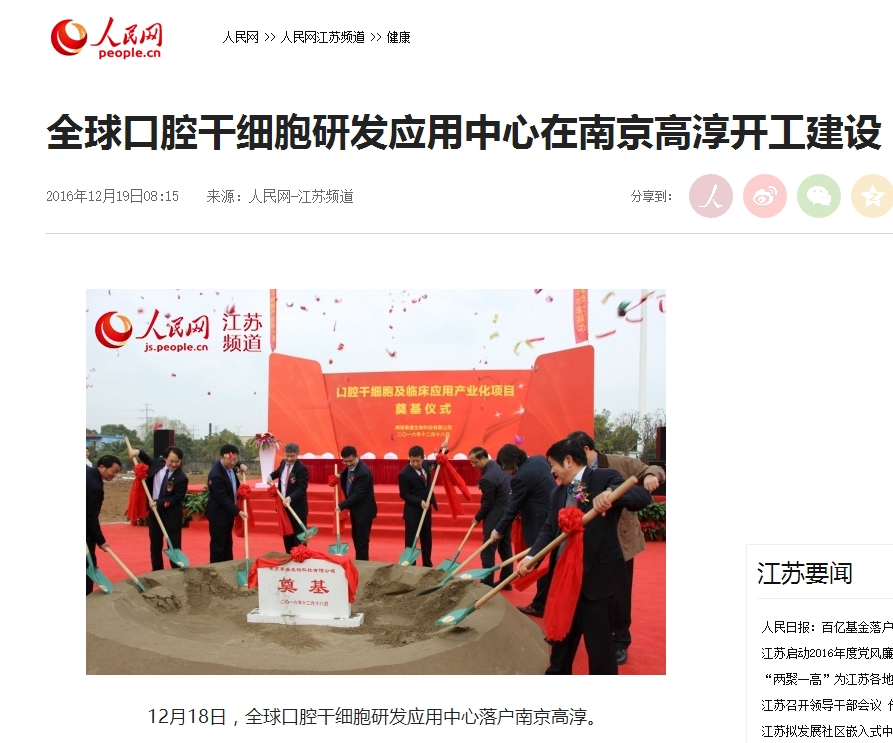 昨日,江蘇衛(wèi)視《江蘇新時空》欄目報道了“全球首個GMP級口腔干細(xì)胞研發(fā)應(yīng)用中心落戶南京”相關(guān)消息。此次全球口腔干細(xì)胞研發(fā)…