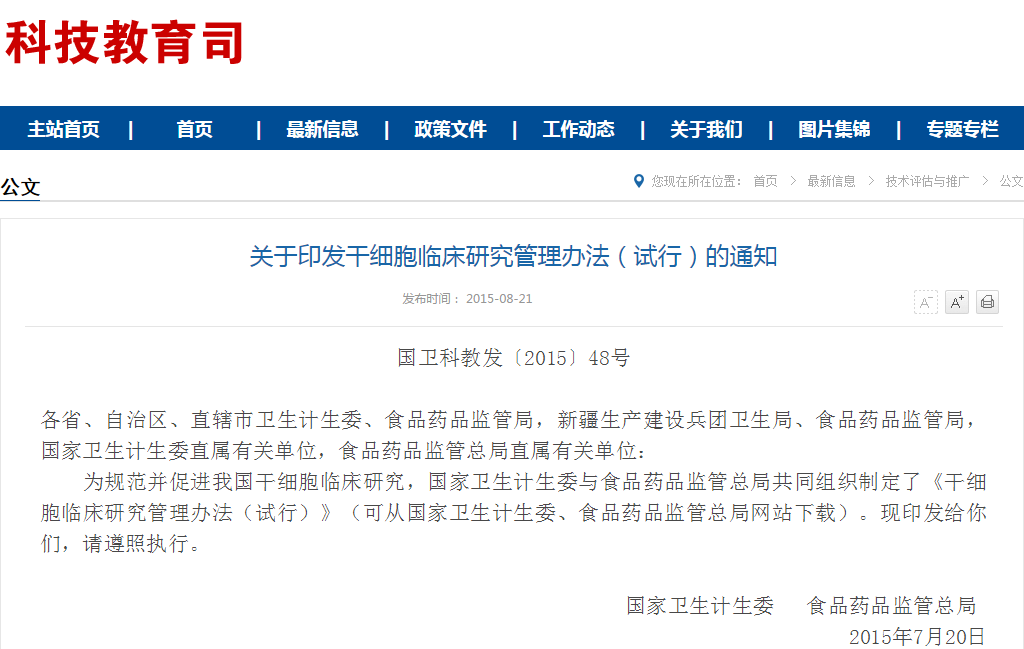 各省、自治區(qū)、直轄市衛(wèi)生計生委、食品藥品監(jiān)管局,新疆生產(chǎn)建設兵團衛(wèi)生局、食品藥品監(jiān)管局,國家衛(wèi)生計生委直屬有關(guān)單位,食品藥品監(jiān)管總局直屬有關(guān)單位: 為規(guī)范并促進我國干細胞臨床研究,國家衛(wèi)生計生委與食品藥品監(jiān)管總局共同組織制定了《干細胞臨床…
