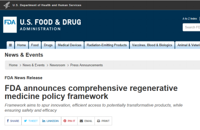美國(guó)食品和藥物管理局11月16日宣布,它正在發(fā)布一個(gè)新的政策框架,可以更迅速地為患者提供涉及人體細(xì)胞和組織(如干細(xì)胞)的治療,同時(shí)對(duì)引起安全問題的產(chǎn)品加強(qiáng)執(zhí)法力度。FDA專員Scott Gottlieb博士表示:我們正在采用建立在現(xiàn)有法規(guī)基礎(chǔ)上的,基于風(fēng)險(xiǎn)…